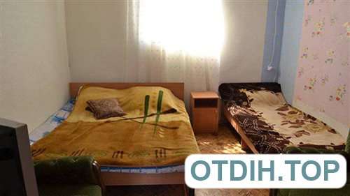 Однокомнатный номер. В номере двухспальный диван и односпальная кровать, кухня, кондиционер, телевизор, посуда, электропечь, холодильник, электрочайник. Санузел находится на территории базы.
