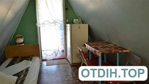 В номере три кровати, холодильник, стол и стулья, на веранде электропечка и рукомойник из фляги. Удобства на территории. Душ нагревается от солнца.