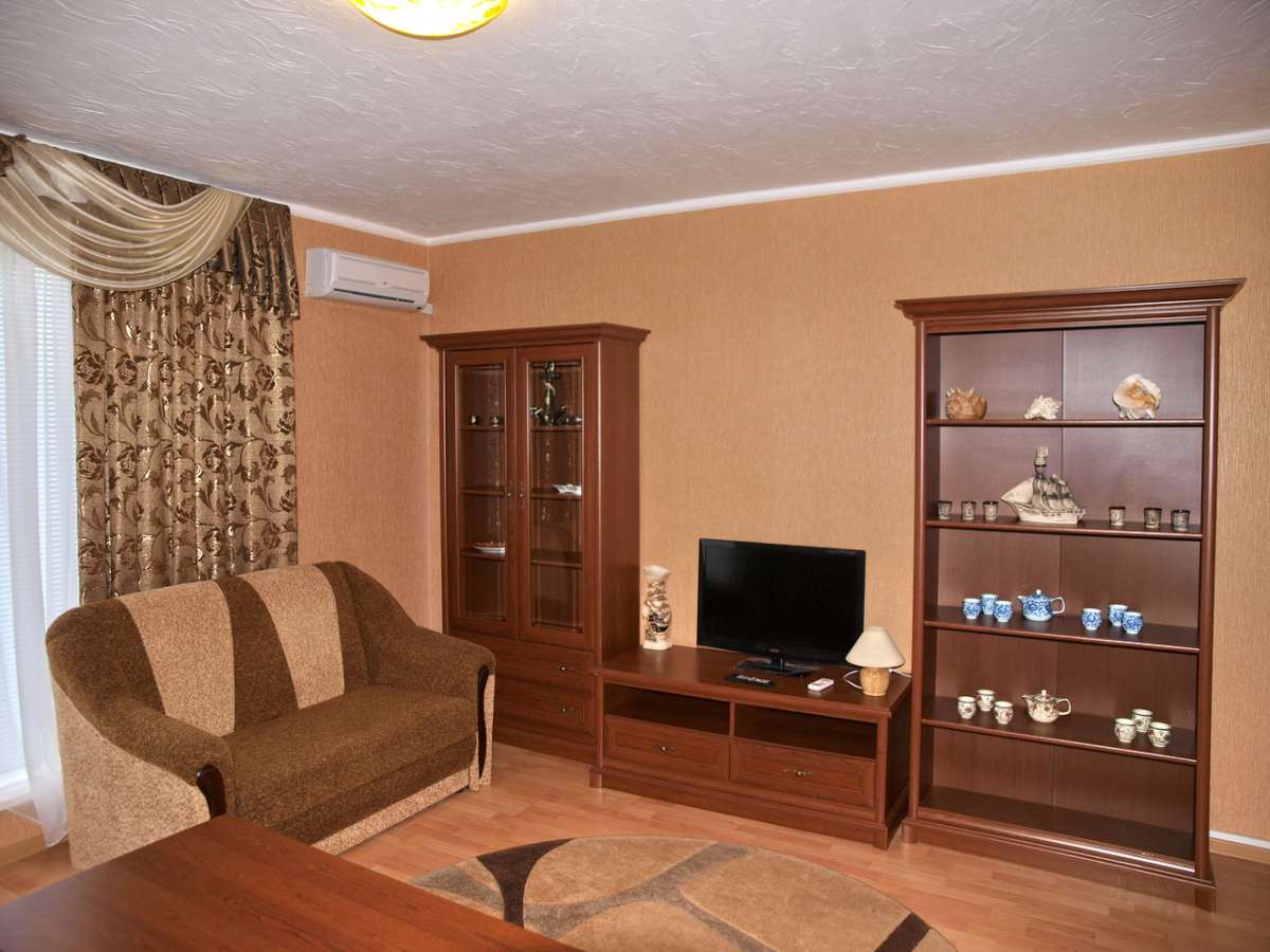 Номер состоит коридора, двух спален, санузла полной комплектации с круглосуточной подачей горячей пресной воды и одного или двух балконов с выходом из спален.