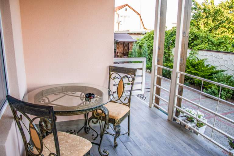 объединены общей террасой два номера: 4-х местный VIP и 2-х местный с отдельными входами. Семейный номер расположен на первом этаже. Оба номера оснащены всем необходимым для комфортного отдыха — удобная мебель, телевизор, кондиционер, отдельные санузлы, мини-бары, шкаф-купе. На террасах обоих номеров установлены кондиционеры.