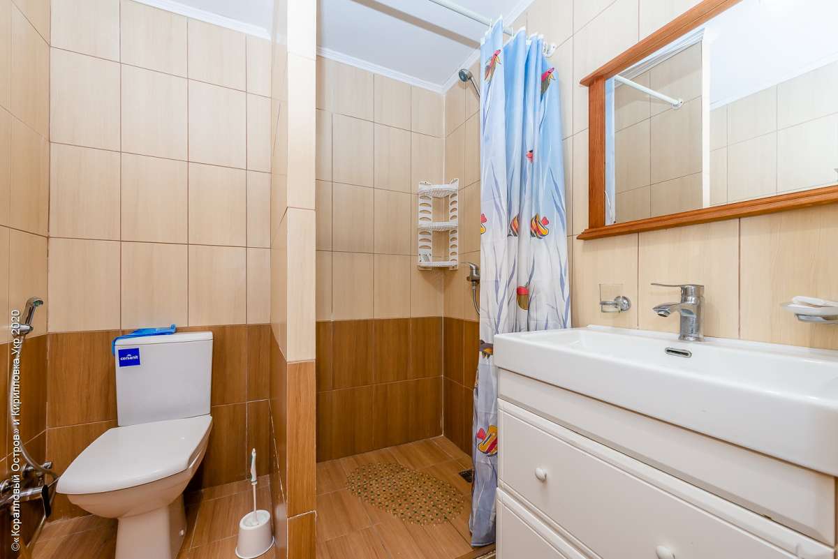 Санузел: умывальник, унитаз-компакт, душ с пресной горячей водой круглосуточно.