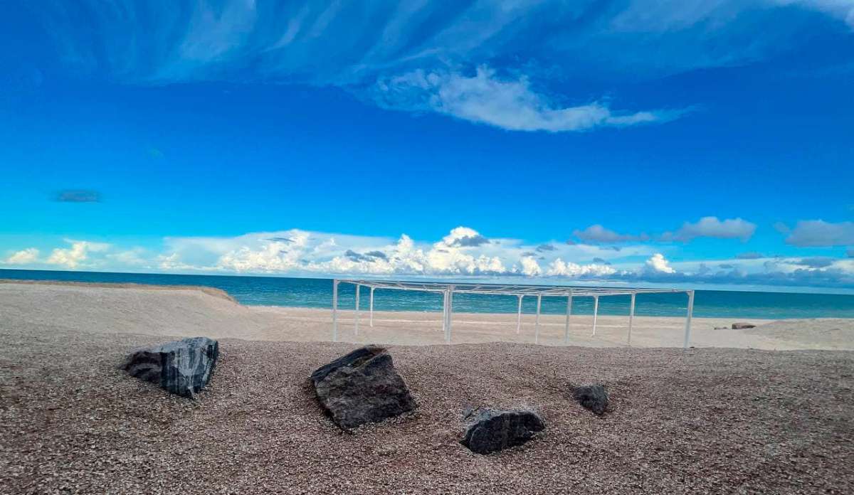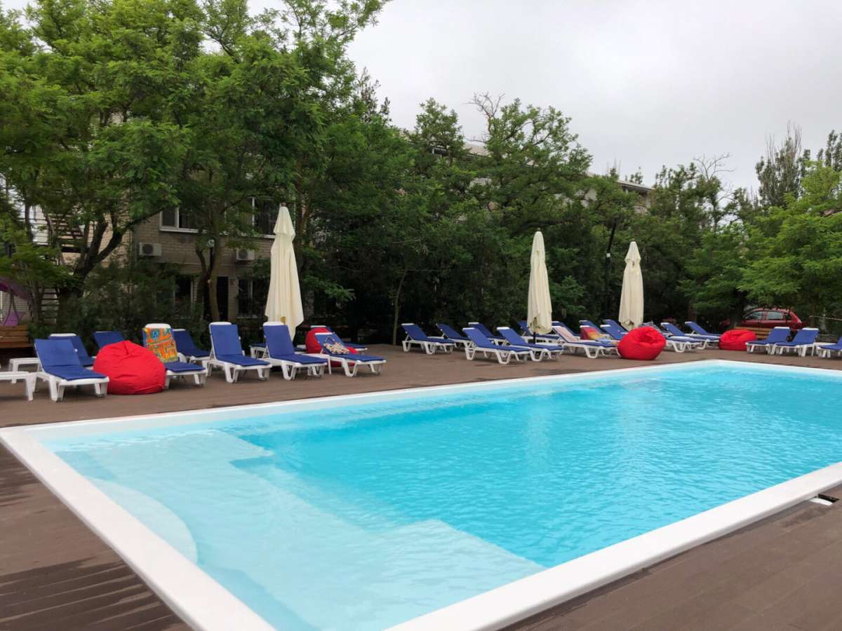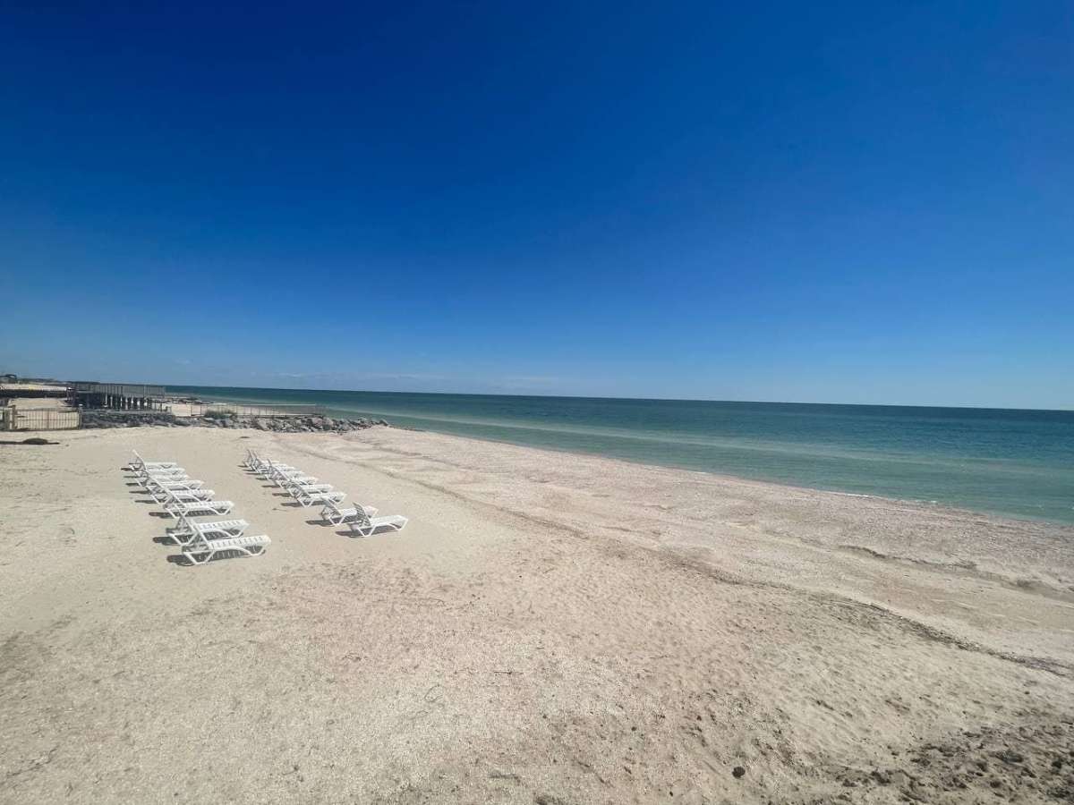 - широкий пляж с навесами и лежаками.