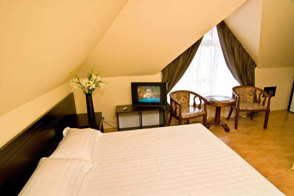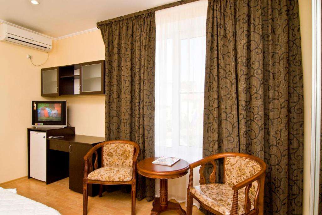 Номера все премиум-класса. Полы покрыты паркетом, стены покрашены в цвет молодого абрикоса и украшены картинами. В номерах стоят двуспальные кровати, рядом с кроватями стоят тумбочки, есть диваны и другая необходимая мебель для комфортного отдыха, установлен кондиционер, телевизор и холодильник. Номера имеют свой санузел, который оборудован умывальником, душевой и полноценной ванной.